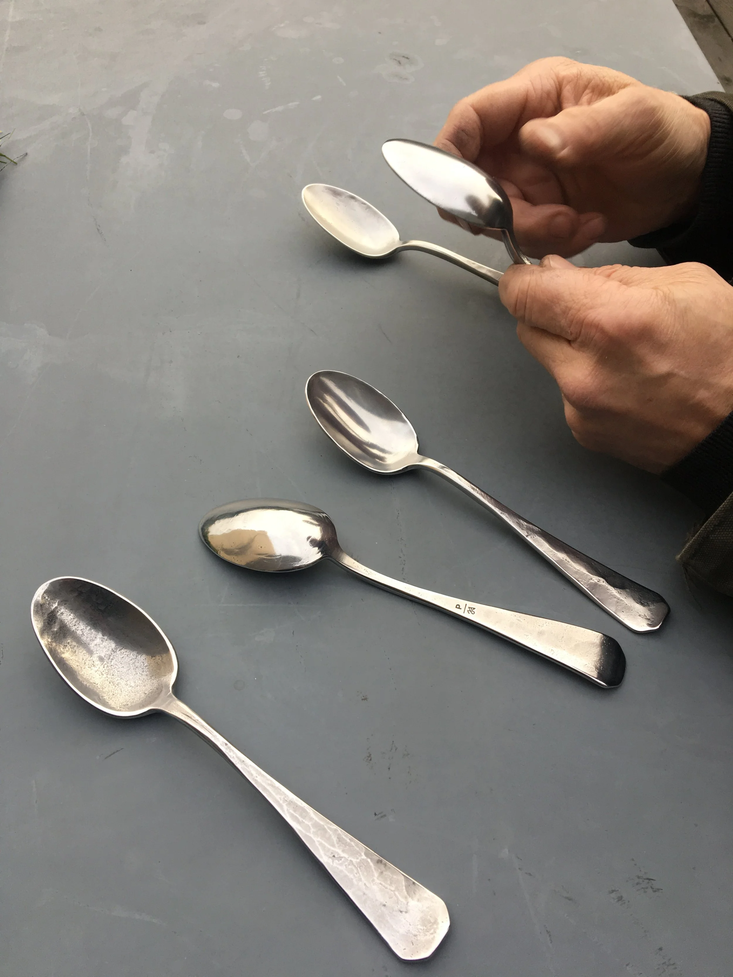 James Austin is a passionate blacksmith who employs techniques from medieval times to craft one of a kind objects. For the custom oyster knife, James set out to the true natural source, sand. With the power of a magnet in sand with iron run off, James gathered material he would then smelt in this studio to produce an ingot of metal. From this ingot he would work meticulously to melt and pound out a thin smooth curved knife, which was then placed in a hand carved handle of driftwood foraged from the shores of Northern California.